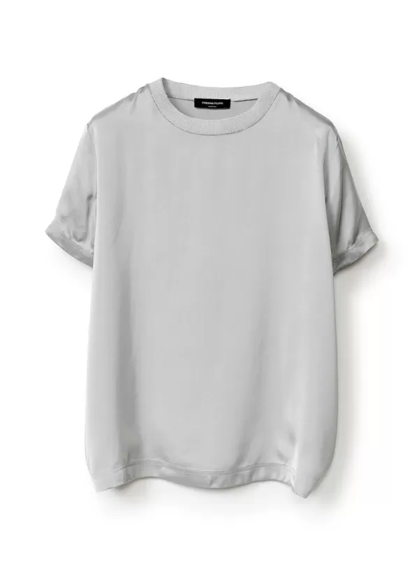 Shop FABIANA FILIPPI SILK T-SHIRT WITH KNITTED CREW NECK Silver/Grey