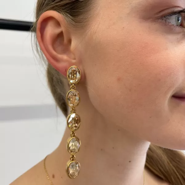 Discount Oscar De La Renta Crystal Gold shadow oval stone earrings